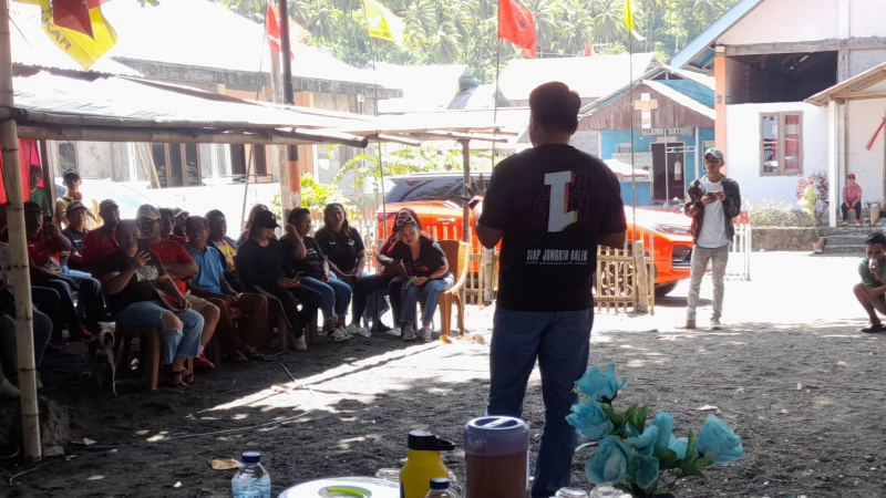 Calon Walikota Bitung Geraldi Mantiri berorasi dalam kampanye di Kelurahan Batuputih Atas.