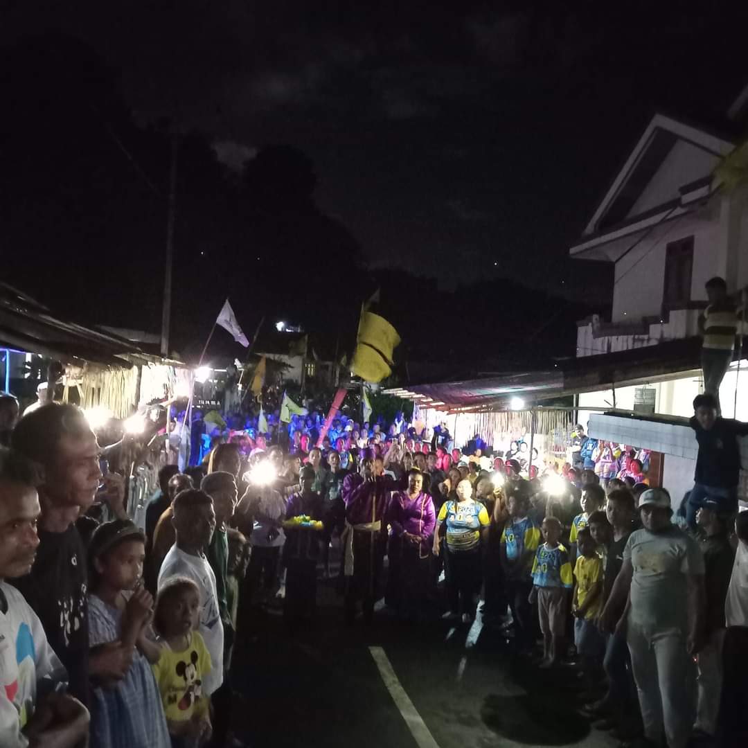 Siau, megamanado-Calon Bupati (Cabup) Kabupaten Kepulauan Siau Tagulandang Biaro (Sitaro) nomor urut 1, Kuko Chyntia Inggrit Kalangit, SKM beserta suami tercinta Reinold Tumbi disambut secara adat dan budaya oleh masyarakat di Kecamatan Siau Tengah (Siteng) dan Kecamatan Siau Barat Selatan (Sibarut), Minggu (17/11/2024)