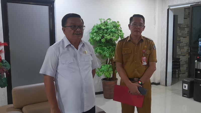 Walikota Bitung Maurits Mantiri didampingi Plt Kepala BKPSDM Bitung Jackson Ruaw, memberikan keterangan pers terkait pemberian sanksi bagi ASN yang melanggar netralitas.