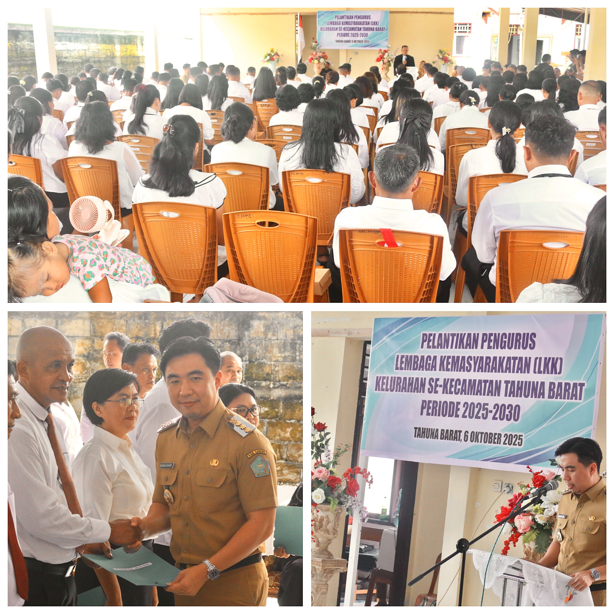 SANGIHE, megamanado com- Bupati kabupaten Kepulauan Sangihe Michael Thungari, hadiri pelantikan Pengurus Lembaga Kemasyarakatan Kelurahan yang berjumlah 205 orang, sekaligus serah terima Camat Kecamatan Tahuna Barat, Senin (6/10/2025), kegiatan dipusatkan di aula kantor camat Tahuna Barat.