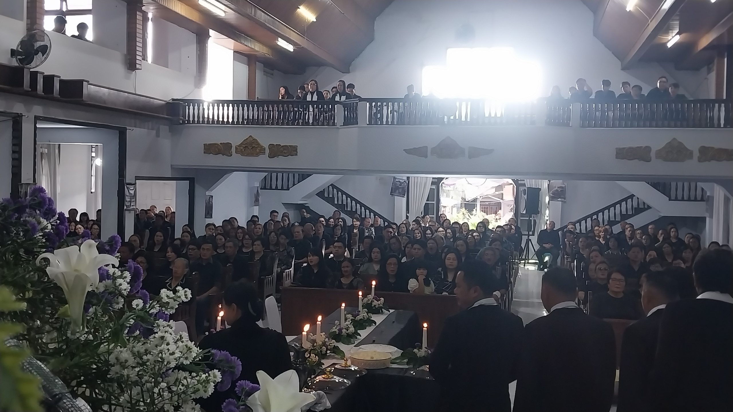 Ibadah dipimpin oleh Pdt. Aneke Kansil-Turangan, STh, dengan suasana khidmat yang diikuti ratusan jemaat.