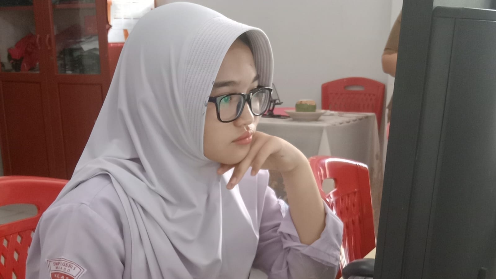 namun dia tampak tenang. Wajah panis dengan balutan kerudung semakin memantapkan pikirannya untuk menyelesaikan soal TKA di sesi 1 gelombang pertama. Adapun Kepala SMPN 5 Manado saat ini adalah Deiner Eike Ezra Liwe. (cie)