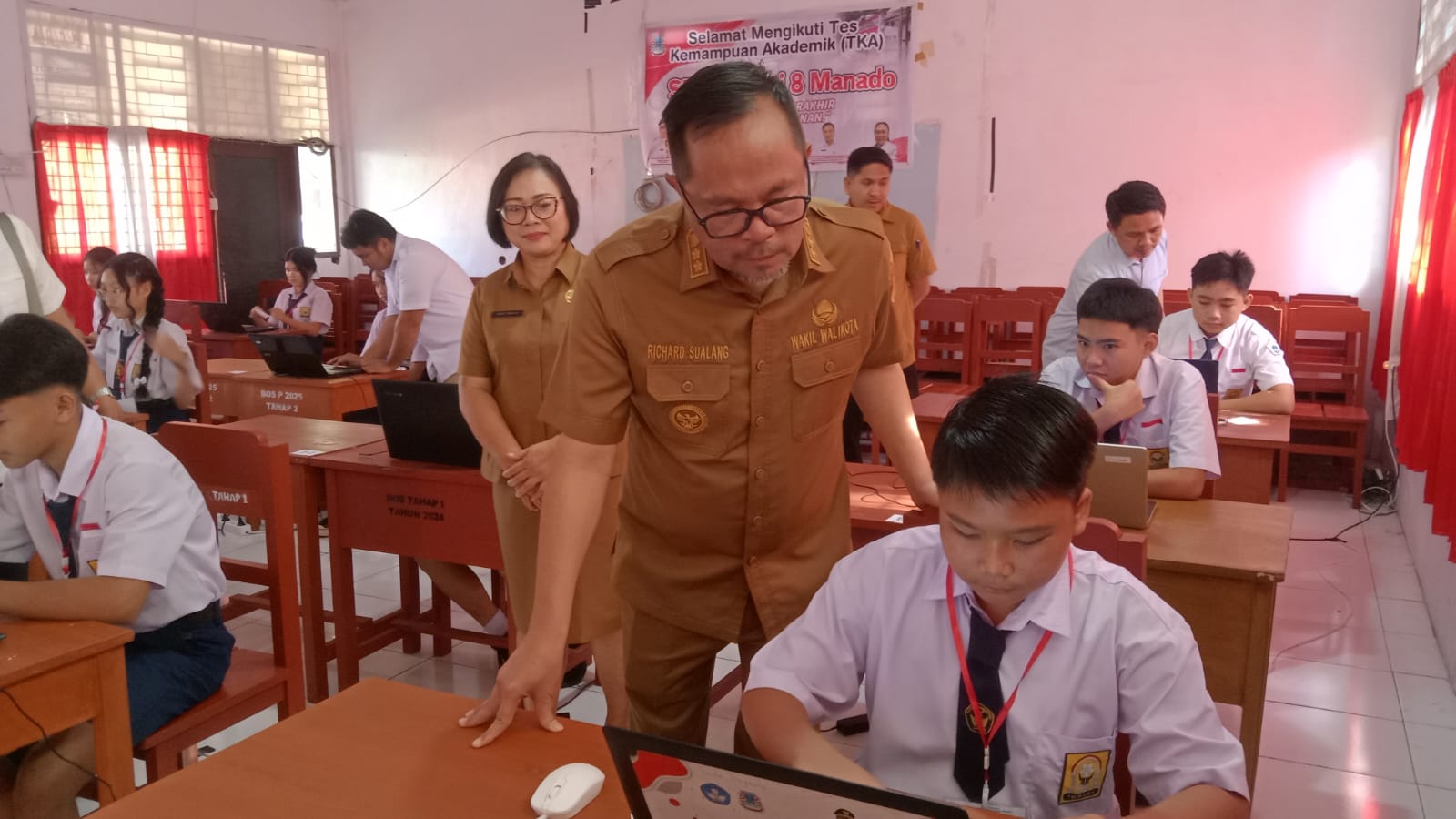 MANADO,megamanado – Wakil Walikota Manado saat ini adalah dr. Richard Sualang, pantau langsung Tes Kompetensi Akademik (TKA) di SMPN 8 Manado Senin (06/04).