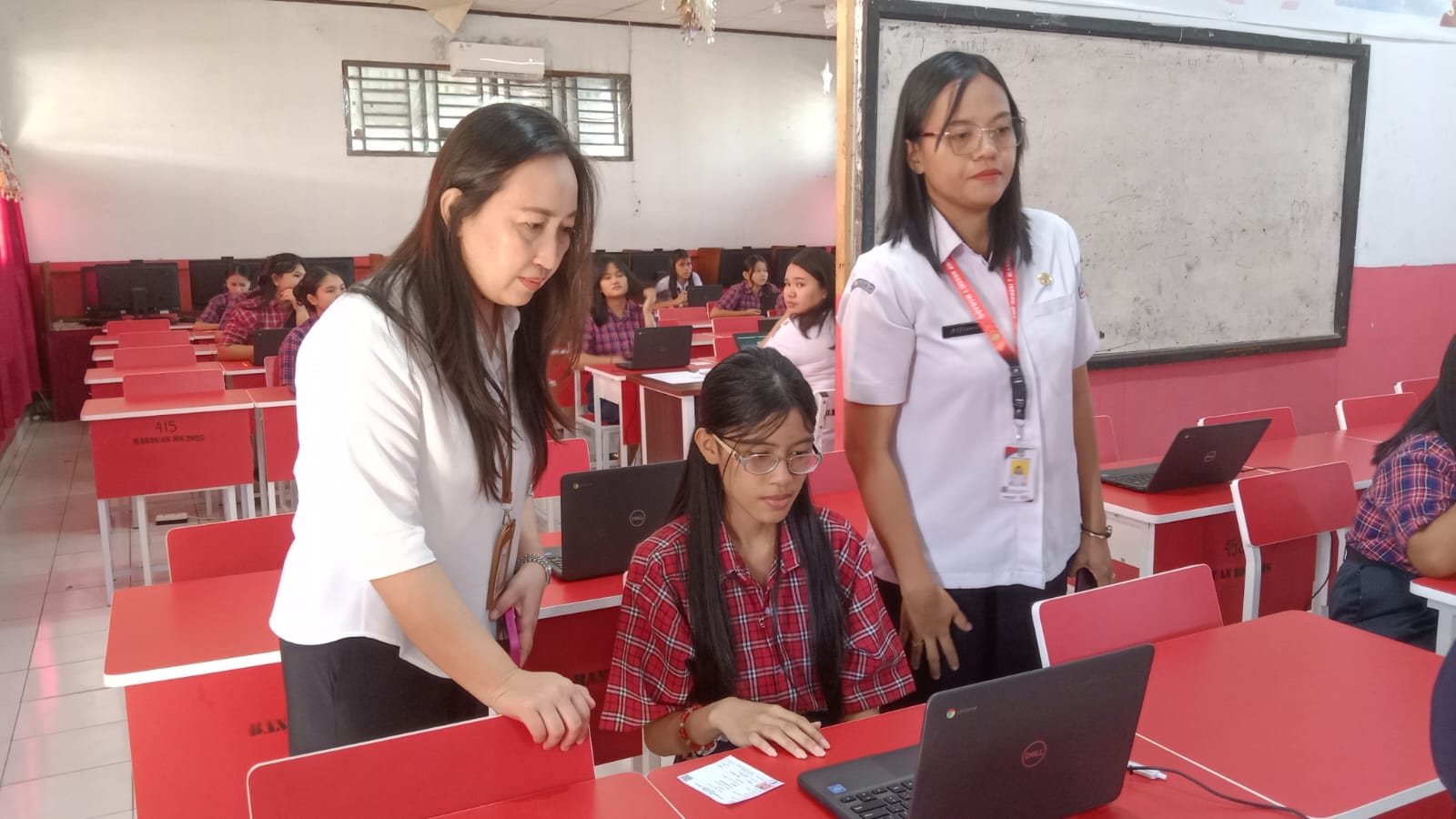 MANADO,megamanado – Kepala Seksi Tenaga Kependidikan Bidang Pembinaan SMP Dinas Pendidikan dan Kebudayaan Kota Manado Wanda Retor, pantau pelaksanaan (Tes Komoetensi Akademik), TKA Gelombang Ke-2 di SMPN 7 Manado Rabu (08/04).